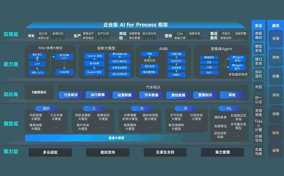 端到端的一站式AI工作空间深度融合了从企业战略规划到日常经营的全流程业务板块,,,定向解决车企内部领域多、、、部门多、、、链条长、、、场景碎片化等难题,,,,支持车企快速构建以AI为核心的生产力写作体系,,,,实现任务执行与AI能力的无缝集成与交互