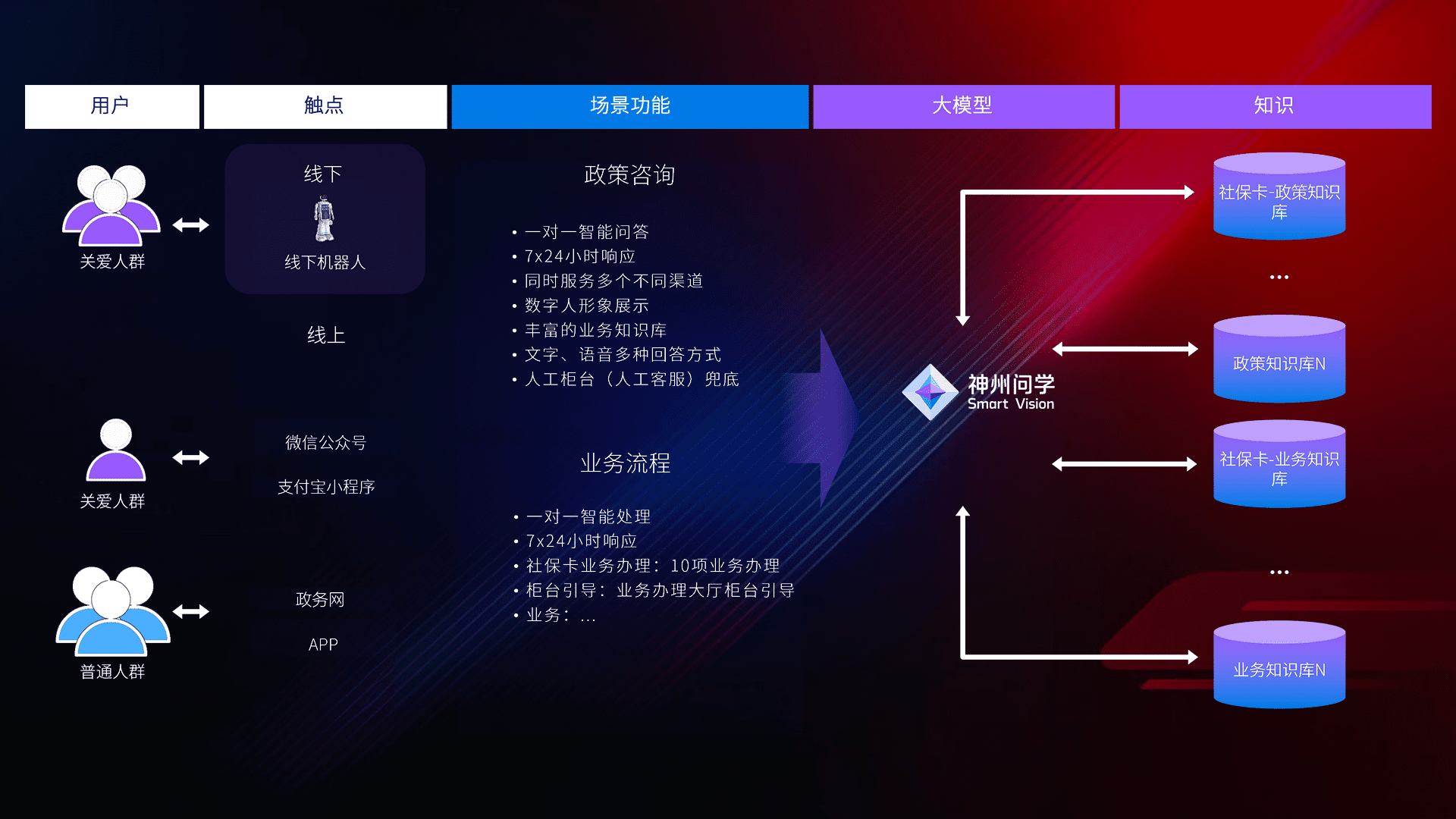 • 线上线下全覆盖:线上提供微信公众号、、、支付宝小程序、、、、政务网、、、、app多种渠道,,,,与线下机器人形成完整服务体系。。